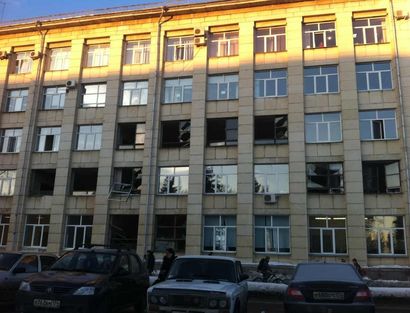 Пока на место разбитых стекол в здании ЮУрГУ вставили обыкновенную фанеру.