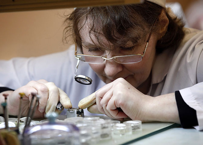 Собирается механизм здесь же. В сборочном цеху — стерильность и порядок, ведь тут рождаются часы. Работники — в спецодежде: ни одна пылинка или волосок не должны попасть внутрь, это грозит сложному механизму смертью.