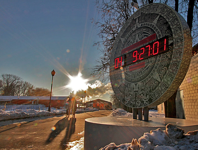 Тысячи людей во всем мире ждут наступления 21 декабря 2012 года. В Москве, в Центральном парке культуры и отдыха им. Горького, по этому случаю установили часы отсчета времени до конца света в форме календаря майя.
